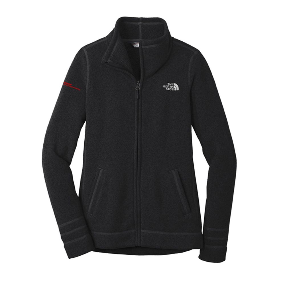A soft, heathered tone gives this heavyweight, sweater-knit fleece jacket a relaxed, casual appeal—perfect for staying warm yet breathable while out on the trails. Made from polyester sweater knit with a brushed fleece interior, it offers exceptional comfort and insulation. Constructed with 53% recycled polyester, it’s also a more sustainable option. Functional features include a reverse-coil center front zipper, zippered hand pockets, and a secure-zip chest pocket on the left for storing essentials. A contrast embroidered The North Face logo on the left chest. Features your logo on the right sleeve.